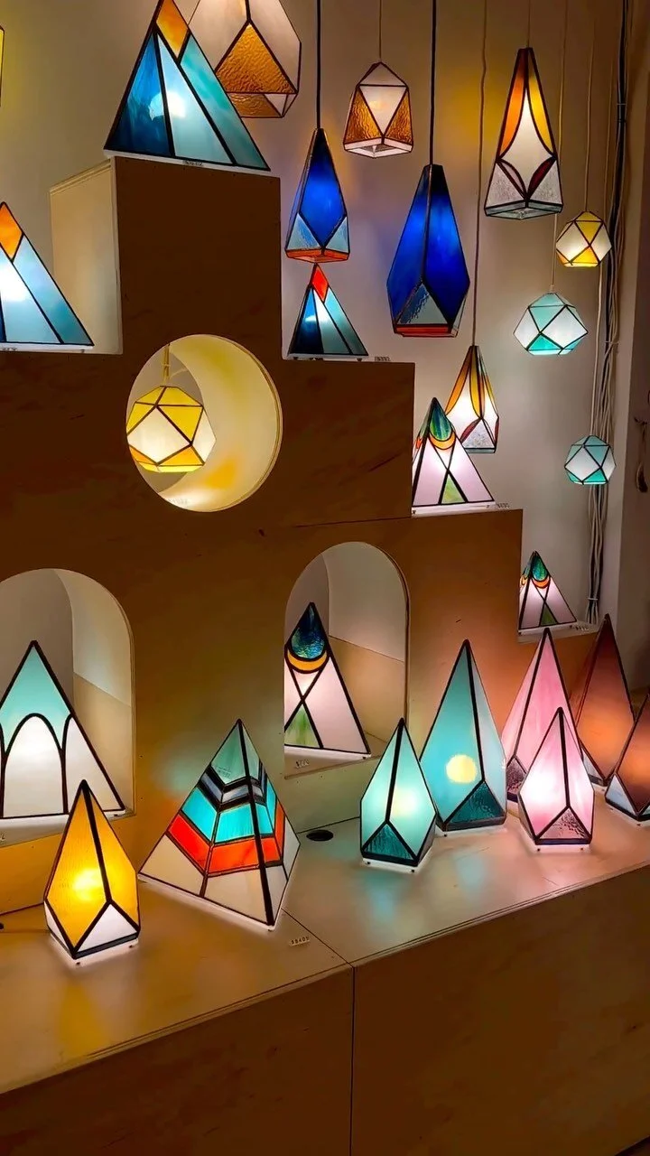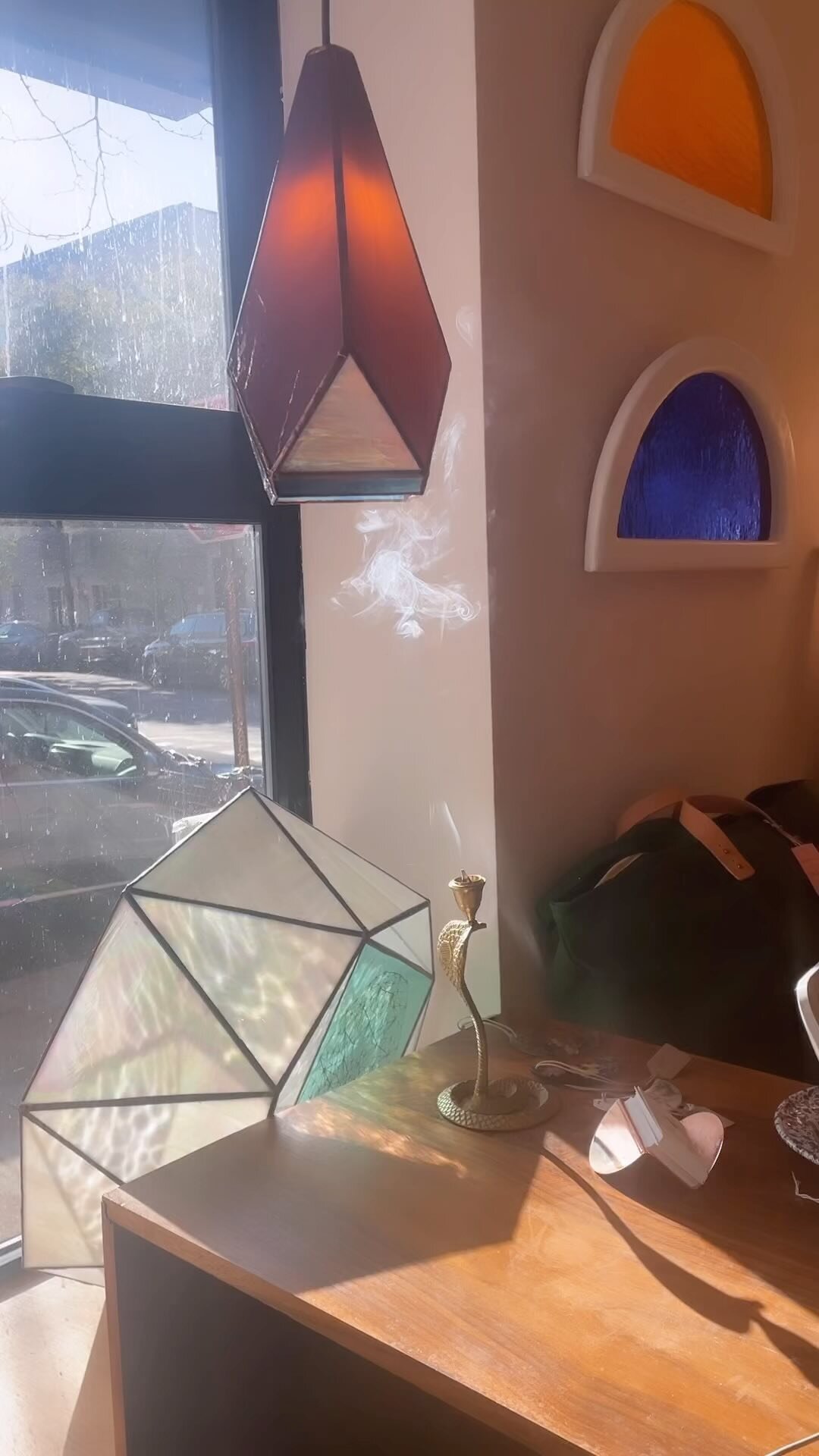I truly believe that light and color are the most powerful tools you can use to transform a house into a home. This is the starting point of my design process and why I began working with stained glass. It warms my heart to know that these pieces, that we spend painstaking hours upon hours making by hand, go on to light the homes of people all over the world. Like a long distance hug with a person you have never met! It provides us with an endless supply of joy to think our little lamps are helping people to feel happy, intimate and relaxed in their own space!